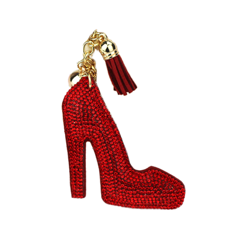 도매 레드 & 골드 반짝이 하이힐 열쇠 고리 자동차 열쇠 고리 및 가방 펜던트 블링 크리스탈 라인 석 패션 금속 신발 열쇠 고리